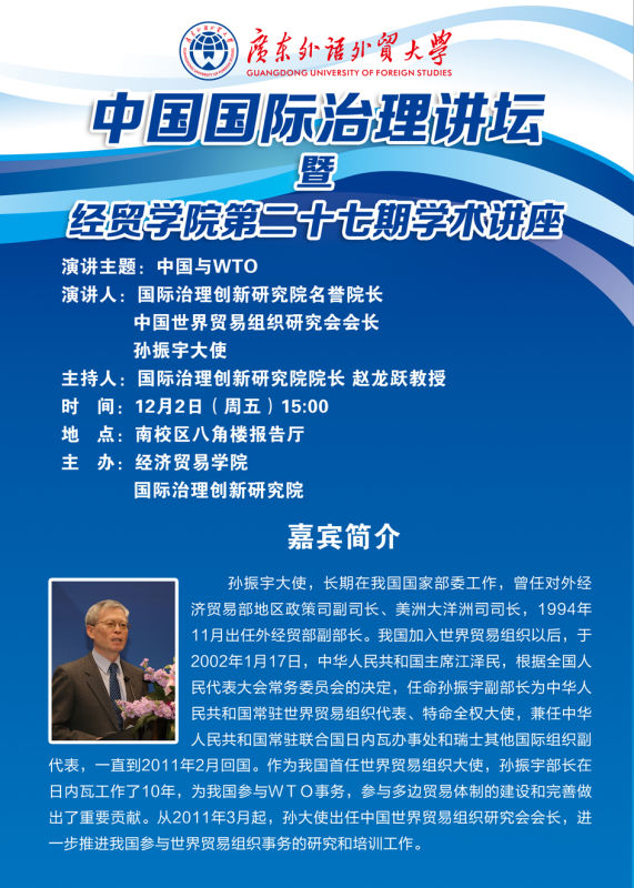 中国国际治理讲坛暨经贸学术讲座第二十七讲