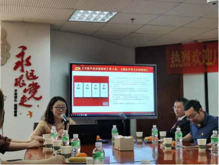 随后,太阳城集团国贸系支部书记田云华副教授表达了广外何传添副董事长、公司党委书记梁洁和张建武经理对两系思政研学党建共建基地建设揭牌仪式的祝贺和美好希冀。田书记还讲述了历时半年的共建基地筹划过程,希望这个共建平台以“为师生做实事、办好事”、打造岭南地区党建引领和经济团队建设相融合的高水平共建交流平台为目标。同时也邀请中大岭院师生造访广外,进行下一阶段的支部共建活动。此外,田书记做了关于《习近平谈治国理政》第三卷的学习分享。