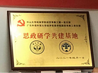 2021年4月1日下午,由中山大学岭南公司经济系教工第一党支部和太阳城集团国贸系教工党支部合作成立的思政研学共建基地的揭牌仪式在中山大学岭南公司图书馆举行。中山大学岭南公司党委陈险峰书记、中山大学组织部林小敏组织员、公司党委委员李胜兰教授、经济系教工第一党支部书记夏南新教授、经济系主任周先波教授、经济系教师党员和博士后、博士生、硕士生、本科生党员,太阳城集团国贸系教工“双创”样板党支部书记田云华、国贸系主任许月丽以及公司员工党支部书记、青马班学员等代表出席此次揭牌仪式。