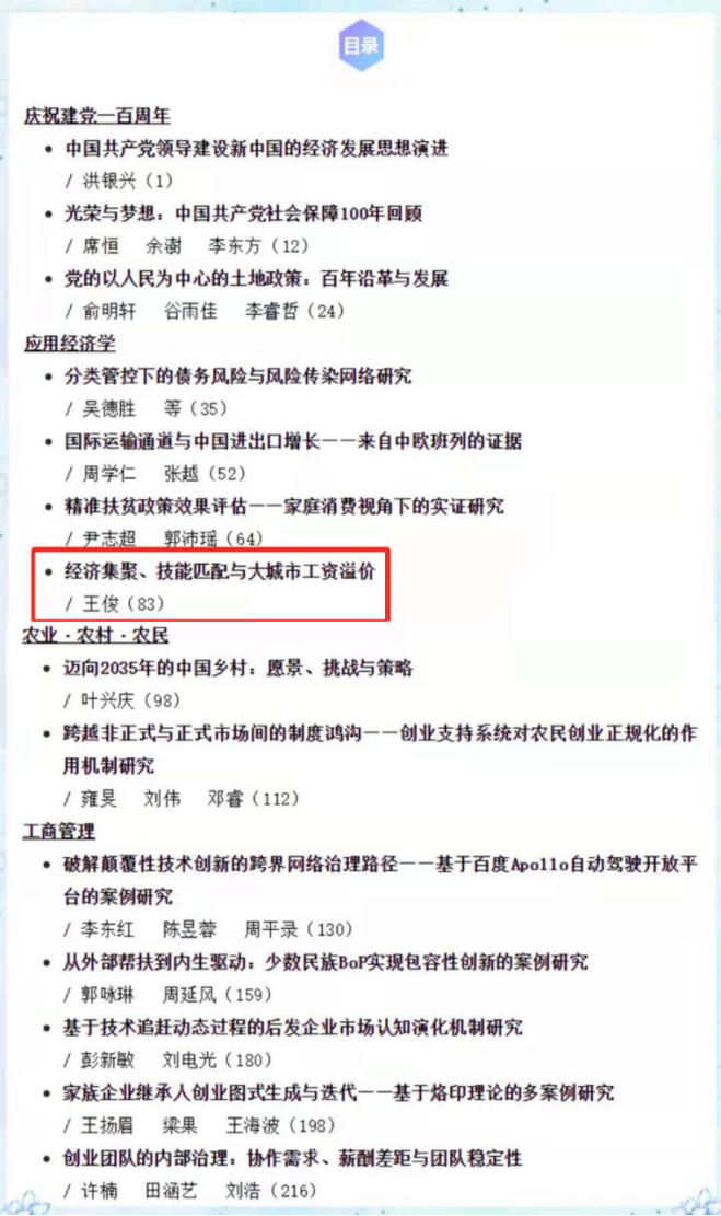 近日,公司王俊教授以独立作者身份在中文一类期刊《管理世界》2021年第4期发表了题为《经济集聚、技能匹配与大城市工资溢价》的论文。