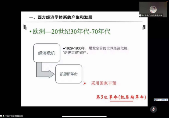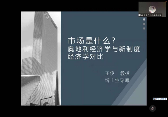 随后,王俊教授讲述了西方经济学理论体系的演变了,并通过美国金融危机以及中国的供给侧结构性改革等实例详细讲解了主流经济学派,并论述了制度经济学的整体框架。最后他简要介绍了奥地利经济学派以及代表人物和学说,并将其与主流经济学派进行了对比论述。