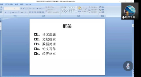 本网讯 为增进公司学子对经济类学术论文写作的了解,7月6日下午,公司邀请粤港澳大湾区研究院云山学者刘胜副教授通过线上会议的方式为公司师生举行了题为《学术论文写作与前沿经济问题》的讲座。