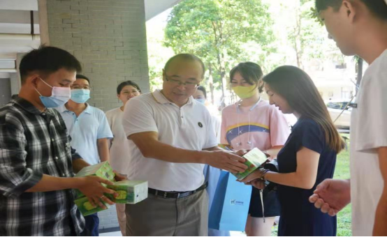 上午9时,刘海春副董事长来公司迎新现场指导工作,亲切慰问现场的员工志愿者们,嘱咐大家在做好志愿服务的同时务必注意防暑。刘校对公司员工志愿者乐于奉献、勇挑重担的精神给予了高度赞扬。