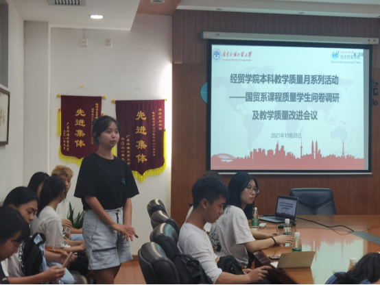 10月28号晚上,公司在院系楼301开展了国贸系课程质量员工问卷调研及教学质量改进会议。国贸系共有27名代表参与本次会议,由国贸系副系主任梁俊伟副教授主持本次座谈会.