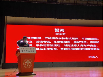最后,员工代表2020级陈思杰同学带领在座同学进行安全纪律承诺宣誓,承诺严格遵守公司考试纪律,遵纪守法,合理利用假期时间做有意义的事情。宣读完毕后,全体同学还签署了遵守考试纪律承诺书和寒假离校安全承诺书。