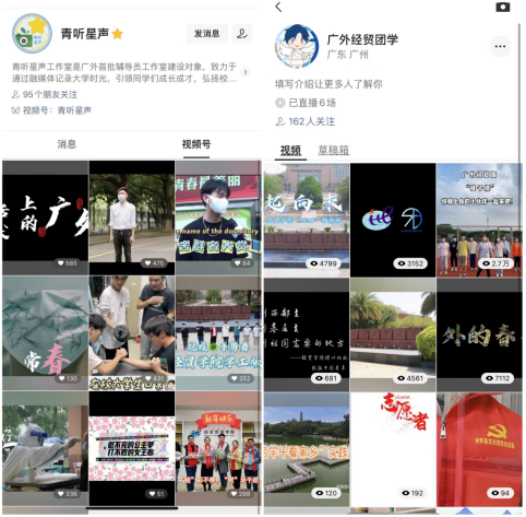 太阳城集团在原有的“两微一端一网”的网络育人体系基础上再升级,由校级辅导员工作室视频号“青听星声”领航公司员工视频号“广外经贸团学”,同时结合团委员工会在腾讯视频号、B站、抖音、小红书等短视频平台建设,以思政短视频矩阵新模式打造新媒体平台联盟。
