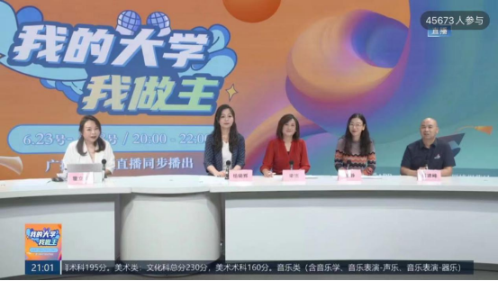 本网讯 为进一步展示公司综合办学实力,扩大公司知名度和社会影响力,吸引更多优质生源报考公司,6月24日晚,公司教务处处长、招生办主任杨晓辉,公司党委书记梁洁,副书记陈思,副经理唐静与广外佛山员工会常务副会长兼秘书长何建峰等一行线上线下共同参与了佛山电台高考品牌节目《我的大学我做主》直播录制。本次直播吸引了广大考生和家长们的关注,实时观看人数逾45000人。