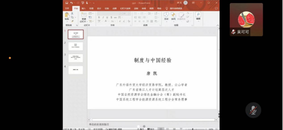 为帮助公司学子培养专业素养,提升专业能力,加强老员工对于专业知识的理解与运用。1月3日上午,公司经济系教授唐凯为公司大三大四经济学专业的同学开展了一场名为《制度与中国经验》的讲座,本次讲座通过线上腾讯会议形式进行。