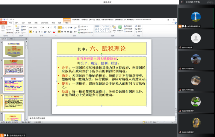对于《国富论》,李传喜教授主要介绍其创作背景、主要观点和作者亚当.斯密的人生。著作出版于资本主义发展初期,在英国工业革命以前。书中总结了近代初期各国资本主义发展的经验,批判吸收了当时的重要经济理论,对整个国民经济的运动过程做了系统的描述,被誉为“世界上第一部系统的伟大的经济学著作”。它也是当代经济学、财税学、国际贸易学等理论研究的鼻祖。书中主张自由竞争,反对政府干预等等。亚当斯密提出的公平、确定、便利、经济四大赋税原则更是对现代税改带来深刻影响。对于《资本论》,李传喜教授指出,它是伟大无产阶级导师马克思创作的科学巨著,以唯物史观基本思想为指导,深刻分析了资本主义生产方式,揭示了资本主义社会发展的规律。马克思在总结前人思想的基础上,主要发展了“劳动价值论”和“剩余价值论”。在《就业、利息与货币通论》的讲解中,李教授简要介绍凯恩斯理论的基本框架,书中指出政府需要通过积极的财政政策等手段政府干预手段调节市场经济活动、创造有效需求等等。