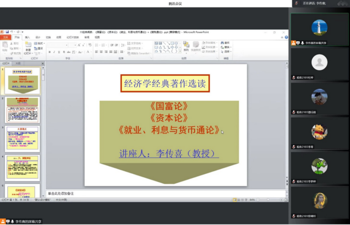 讲座尾声,李传喜教授概述了综合观点:既要鼓励市场自由流动,又需要政府适当进行宏观调控,以防垄断。同时教授强调这三部著作包含了世界经济史最基础的理论,鼓励同学们进行更深层次的阅读。
