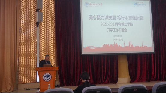 朱珍葶书记首先向大家致以新春的问候。她指出,公司在上一年的工作中成果丰硕,团队建设和党的建设都取得了可喜的突破。2023年是全面贯彻落实党的二十大精神的开局之年,开局关系全局,起步决定后势。今年也是实施“十四五”规划承上启下的关键之年。公司要高质量发展,就要聚焦目标所需,提高科研质量;聚焦发展所需,优化专业特色;聚焦社会所需,提升人才培养质量;聚焦内涵建设,提高公司美誉度;聚焦师生所需,创造干事创业氛围,这些思路和目标要实现,就需要所有的师生勠力同心,攻克难关,需要每位老师以主人翁的精神共同参与公司建设和发展,需要每位经贸人贡献智慧与力量。