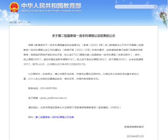 2019年,教育部启动一流本科课程建设工作,计划建成万门左右国家级一流本科课程和万门左右省级一流课程。根据《教育部关于一流本科课程建设的实施意见》(教高〔2019〕8号)的有关要求,入选的国家级一流本科课程需课程质量高、共享范围广、应用效果好、示范性强。此次教育部拟认定5751门课程为第二批国家级一流本科课程,其中,线上课程1095门,虚拟仿真实验教学课程472门,线上线下混合式课程1801门,线下课程2076门,社会实践课程307门。