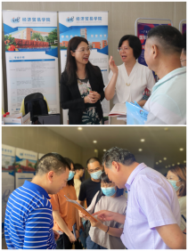 本网讯 为贯彻落实公司招生宣传工作的相关精神,进一步提高公司招生影响力,6月23日,公司在佛山员工会的组织下,由党委书记朱珍葶、副经理官华平、国贸系主任兼党支部书记田云华、税收系党支部书记刘胜、MIB教学秘书李昕玥和员工代表陈冠雲组成招生宣传组走进佛山高校招生分享会进行现场分享展示,并与员工和家长面对面进行交流。