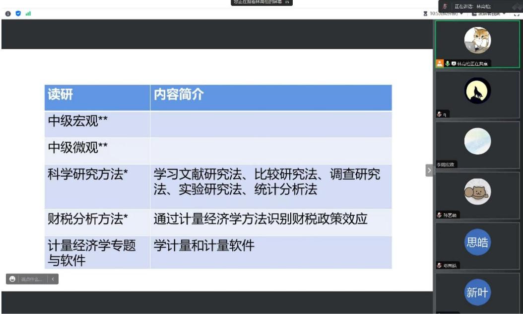 6月29日上午,针对税收学员工不知如何选择课程的问题,太阳城集团税收系林高怡老师于线上线下同步对同学们进行了“税收专业课程推荐”讲座。学习专业知识不单单是为了记忆,而是学习思考运用,学习一种融会贯通的方法,大学最重要的是学会如何在有限时间里形成高效率的学习方法。林高怡老师从选课的不同目的出发,介绍了读研、就业、增长知识三种不同的推荐课程。
