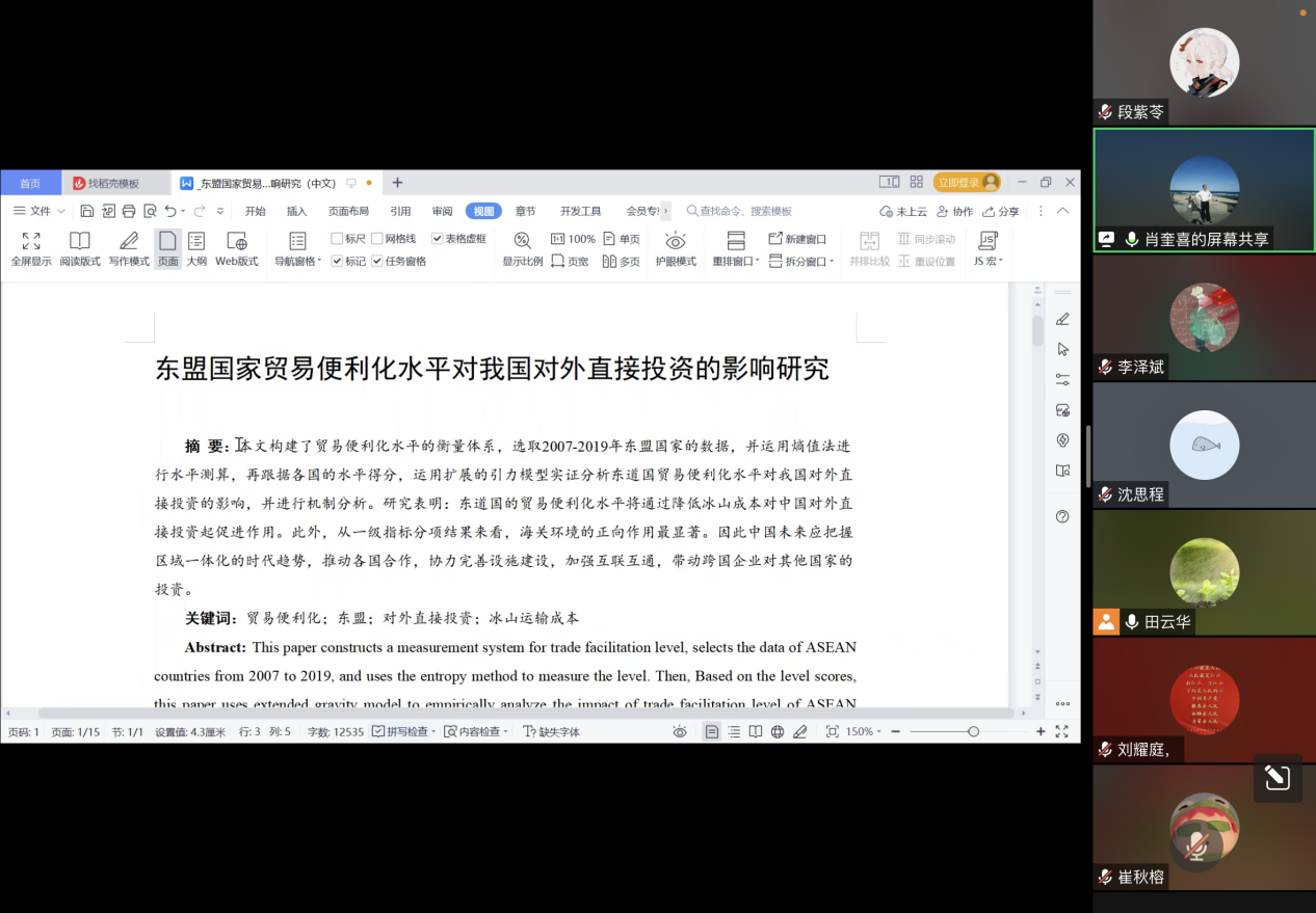 6月29日下午,太阳城集团国贸系肖奎喜教授为国贸2020级与2021级员工进行了国贸专业优秀毕业论文实例教学与写作指导课,线上线下结合一共有60多位同学一起学习与研讨国贸系优秀毕业论文。国贸系主任田云华副教授担任本次指导课的主持人。
