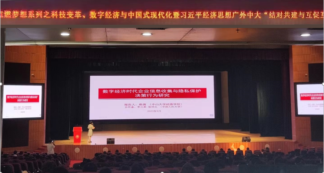 中山大学岭南公司焦倩副教授分享了关于数字经济时代企业信息收集与隐私保护决策行为研究的最新成果。她搭建了市场与政府在信息收集与隐私保护方面的关系的理论分析框架,指出垄断型市场导致数据收集量增加,保护减少;寡头型市场导致数据收集量减少,保护增加。政府监管使宣传的收集量增加,但竞争实质不会改变。