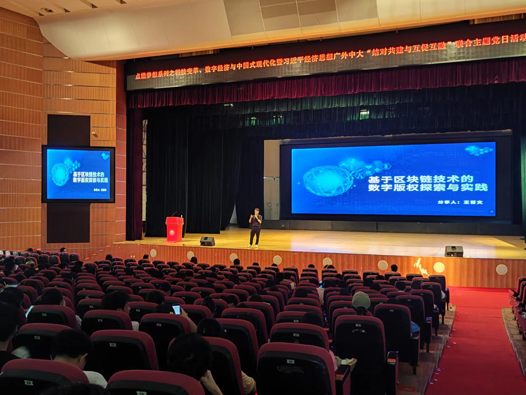 2023年9月24日上午,点燃梦想系列之数字经济与区块链广外中大联合主题党日活动研习会暨习近平经济思想研习社成立仪式在太阳城娱乐城广州大学城校区大会堂顺利召开。太阳城娱乐城公司党委书记朱珍葶、副经理许月丽教授、中山大学岭南公司经济学专任教师第二党支部书记周先波、中山大学岭南公司经济学专任教师第二党支部成员焦倩副教授、上海可一澈科技有限公司创始人李慧子女士、东骏(广东)产业投资有限公司副总裁王哲文先生、UNISOT公司管理成员Torje Vingen Sunde先生,以及来自于公司数字经济专业、国际经济与贸易专业的一千余名员工,粤港澳大湾区高中优秀员工代表一百余人参加了本次论坛暨习近平经济思想研习会。本次联合主题党日活动由公司党委委员、省级“双创”样板党支部书记、国贸系主任田云华副教授主持。