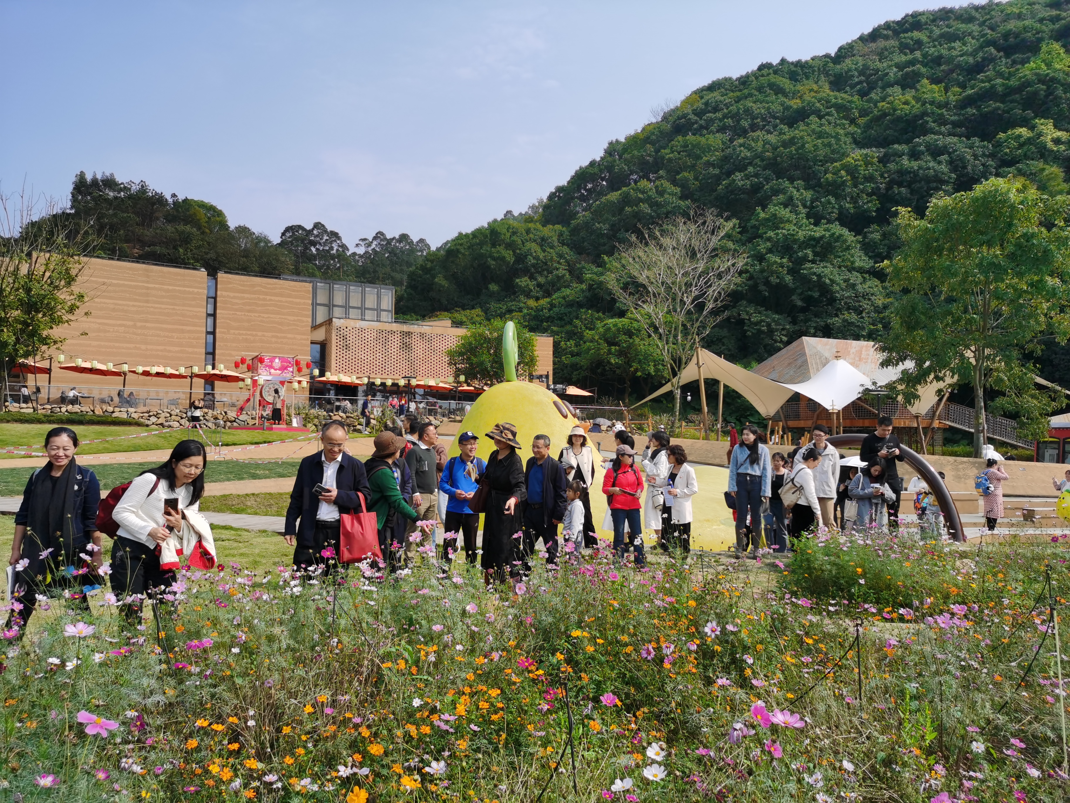 和风煦煦,春意盎然。来到天人山水度假区,老师们呼吸着清新芬芳的户外空气,游览于诗意田园之间,陶醉在秀美景色之中。漫步在种类各异、绚丽多彩的花卉区和果蔬区,老师们感受到春日万物复苏的勃勃生机,阅读学习各类植物介绍,相互交流种植和观赏经验,并纷纷拍照合影,记录着美好难忘的时刻。