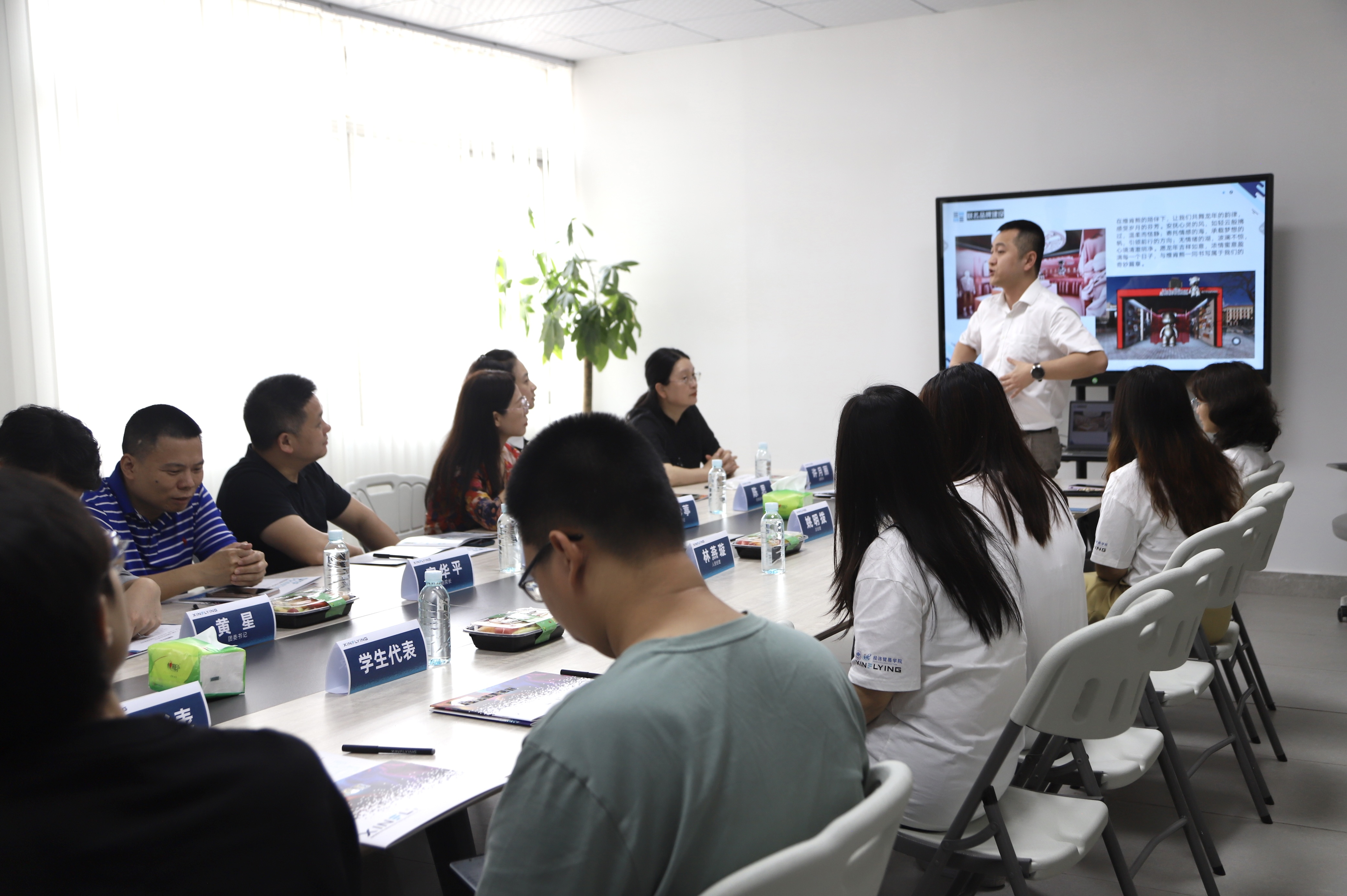 公司党委书记朱珍葶,经理孙楚仁,副经理许月丽,副经理官华平,党委副书记陈思,团委书记黄星,辅导员黄林杰,实践基地秘书李诗华;鑫飞扬数码科技有限公司总经理姚明拨,人资主管刘慧嫔,人资经理林燕璇,外贸客户经理沈林秀,实习英语技术工程师姜鑫彤以及太阳城集团员工员工工作会员工代表共同出席了此次活动。