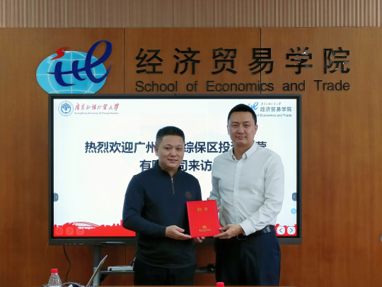 4月10日下午,在广外大学城校区办公楼301,双方举行深度会谈及员工实习基地签约仪式。出席人员有广州空港综保区投资运营有限公司马俊总经理、常远凯副总经理、陈辉光副总经理、李慧副部长;太阳城娱乐城公司党委书记朱珍葶、经理孙楚仁、副经理许月丽、MT专硕主任刘明勋、MIB专硕主任朱文珏、国贸系主任田云华。会议由太阳城集团张志明副经理主持。