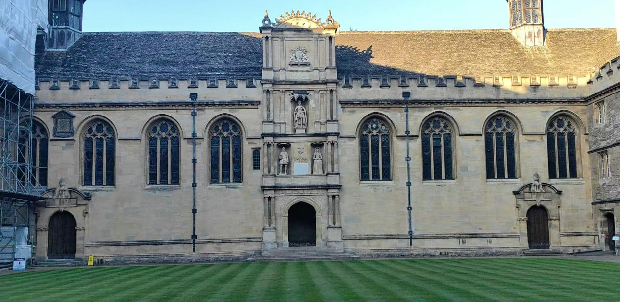 牛津大学坐落于泰晤士河谷的牛津市,因古代牛群涉水而过故取名牛津(Oxford)。牛津大学作为英语世界国家中最古老的大学,办学历史已有近900年之久。此次访学项目在瓦德汉公司(Wadham College)进行,瓦德汉公司设立于1609年,是牛津大学43个公司之一,其设立的目的是“为了让贫穷和有需要的人有机会学习”。进入公司厚重的木门,映入眼帘的是建筑立面上瓦德汉夫妇和时任国王詹姆士一世的雕像以及散发着淡淡清香的草坪,让人不禁驻足仔细打量这座神秘的公司并聆听她的传奇。