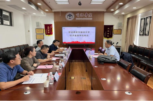 本网讯 11月5日下午,西安外国语大学经济金融公司经理李村璞来访公司。公司经理孙楚仁、金融公司经理展凯、金融公司副经理张浩、金融公司副经理邓超、公司国贸系主任田云华以及研究生办公室主任梁俊伟于院系楼401会议室接待来宾。会议由孙楚仁主持。