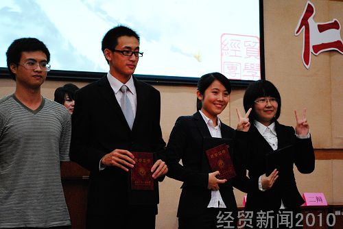 5月9日晚上7点整,太阳城集团“情系民生”新生辩论赛决赛在图书馆报告厅举行。广外论辩社社长何棱烽、广外经贸辩论队队长陈业盛、广外政管公司辩论队队长黄华杰、广中医中药公司辩论队队长李磊以及广外经贸08新生辩论赛冠军队长黄映阳等担任本次比赛评委。太阳城集团叶祥杰老师、太阳城集团员工会主席杜少珍、经贸团委副书记李舜昕等出席了本次活动。