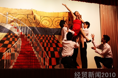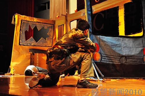 金融082的《The Producers》则将全场气氛推向了最高潮。”Money and fame are nothing when it compared to friendship”(和友谊比起来,金钱和名誉什么都不是),引起了在场每一位观众的共鸣,剧中展现的友谊也感动了在坐的每一个人,精彩的表演使全场掌声不断。金融083的《One Flew Over the Cuckoo’s》,演员入木三分的角色刻画让观众忍俊不禁,别具一格的投影戏更是赢得了观众的齐声喝彩,赢得评委老师的一致赞许。