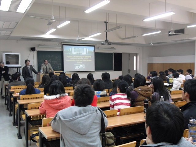 3月11号下午在南校区G206教室,西班牙纳瓦拉公立大学副董事长Javier Casali等主要负责人来访公司,他们以该校与公司合作开展“国际贸易硕士”联合培养项目为主题为在场的本科生们展开了一次生动的宣讲。