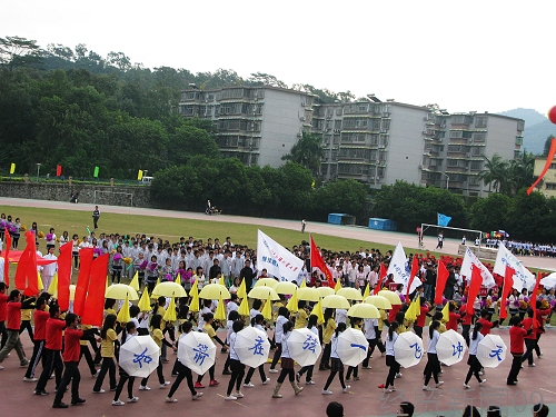 早上九点,本届校运会正式开始。各个公司的入场方阵依次通过主席台,向全场观众展示各自公司的风采。太阳城集团方阵通过主席台时打出“如箭在弦,一飞冲天”的口号尤为引人注目,显示出经贸健儿志在创造佳绩的自信和决心。