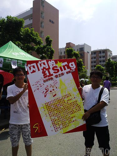 9月27日,校道上“闪闪红sing”的经贸“秋之声”热潮袭来,吸引了一路的同学们的驻足咨询,并排长队等候“秋之声”决赛的抽票机会。同时,摊位也设有现场报名,工作人员为有意参赛的同学提供表格并解答疑问。