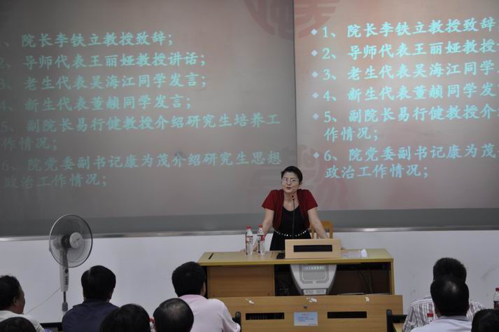 导师代表王丽娅教授言简意赅地给新生上了第一课:第一是研究新生需要学什么?王教授从专业知识学习、学术科研、合作精神、独立能力等方面来要求员工。第二是建议员工怎么学习,据此她提出三点建议:一是向导师学习,导师渊博的知识和丰富的阅历非常值得我们学习;二是向书本学习,不仅要学的有深度,也要学习各种对自身有用的书籍;三是向同龄人学习,班级同学,不同专业的员工、师兄师姐等都可以作为自己学习的对象。