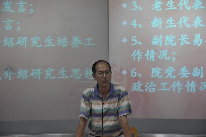 主管研究生思想政治工作副书记康为茂老师强调了研究生思想政治教育的重要性,指出同学们要加强道德教育、情感教育和心理健康教育的必要性。