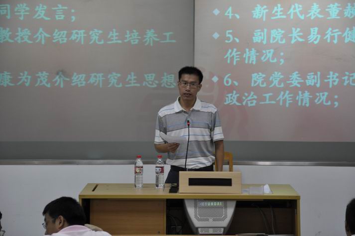 老生代表吴海江同学也从自身经验给师弟师妹们在学习生活中提出了一些建议,希望新生多读书,多从事研究,要提高自己的各方面素质,加强使命感。