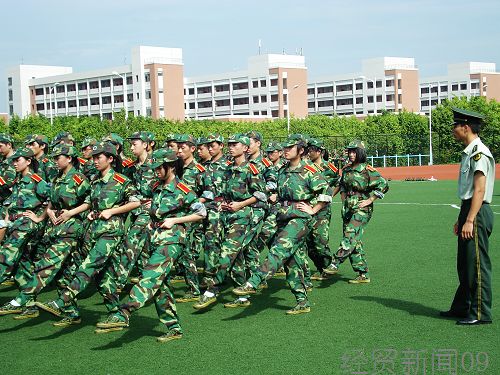 “我是一个兵,来自老百姓……”,“寒风飘飘落叶,军队是一朵绿花……”。运动场上,这些此起彼伏的歌声中张扬着09级经贸新生的青春与激情。而动人的歌曲中那散发着严肃沉稳的温情的男低音,则是敬爱的教官作为新生踏上新征程的引路人所留下的师长情。