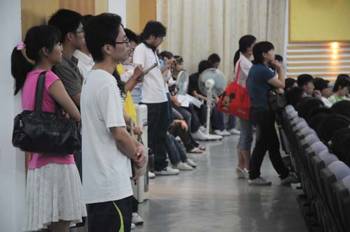 讲座现场座无虚席,不少同学甚至站着听,观众席中不时爆出热烈掌声。讲座结束后,更有许多同学上前向张汉林请教。