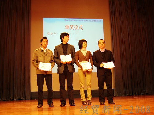 紧接着的颁奖仪式把大会的气氛推向了高潮。大会以猜谜方式揭晓了优秀指导老师和优秀实习生名单。曲玄烨、邓伟杰、吴晓颖等老师获得了“广交会优秀指导老师”的光荣称号,朱宏梅等同学荣获“广交会优秀实习生”称号。