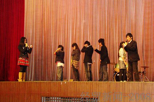 晚会开始,顾也力副董事长致开幕词。顾董事长赞扬了晚会“飞越界限,共筑梦想”的主题并对公司职工教育近年来的发展予以充分肯定,他指出一个大学的国际化程度如何是评判一个大学的重要标准,增进与国际友人的交流,飞越国别的界限,有利于同学们更好地提高自己,完善自我。