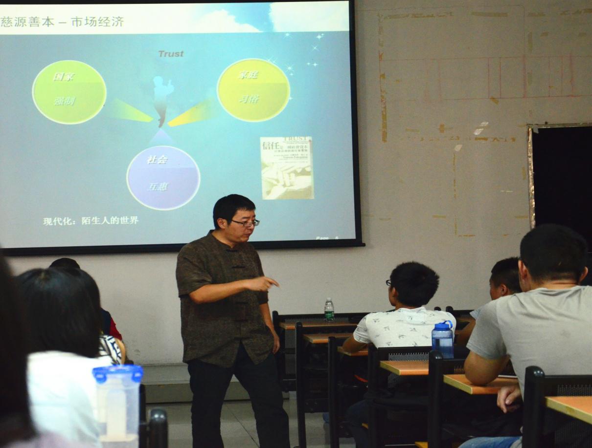 最后由校外导师陈钢先生进行总结陈词。他从大道善行到人道善行,从商业企业家到社会企业家,讲述了“走向现代人的慈善”。并告诉大家,商业企业家注重资本,通过改变经济形态,进而提供就业机会,给强者更大空间,而社会企业家注重实效,注重结果大于过程,同时他们之间保持良好的过程程序化可复制性。