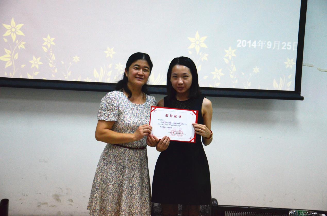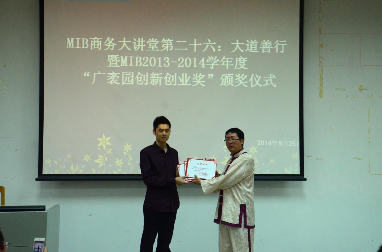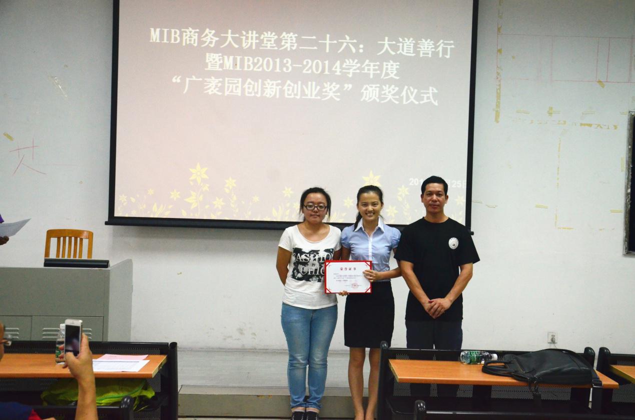 本网讯(通讯员 尤力)9月25日下午4点,2013-2014学年度“广袤园创新创业奖学金”颁奖仪式在南校区F208教室如期举行。公司党委书记黄秀娟、MIB中心老师以及2013级、2014级MIB的同学们参加了此次仪式。