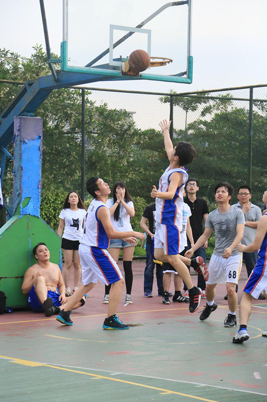 2014年5月16日,在广外北校区篮球场。太阳城娱乐城MIB篮球队与广东振戎能源篮球队进行了一场精彩的篮球比赛。MIB中心的众多同学们参与其中,比赛吸引了一大批啦啦队员到场加油助威,随着哨声响起,比赛正式开始。