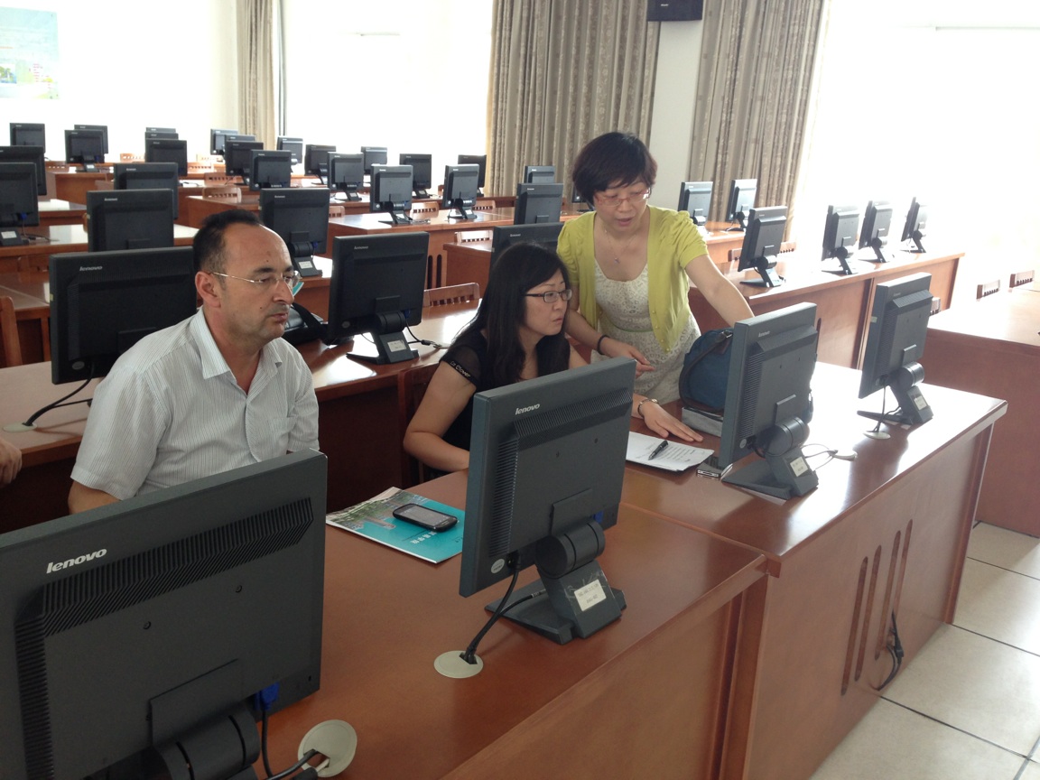 座谈会结束后,王霞老师一行在国贸系陈琳老师和周一帅教务秘书的带领下到公司教育技术中心实验楼参观了国际经贸实验室。陈琳老师向来访教师介绍了国际经贸实验室的配置运行情况、教学软件的使用和相关课程的实践教学情况,双方进一步对实践教学、实验室的建设、教材的选择、教学方法等方面的内容进行了交流。