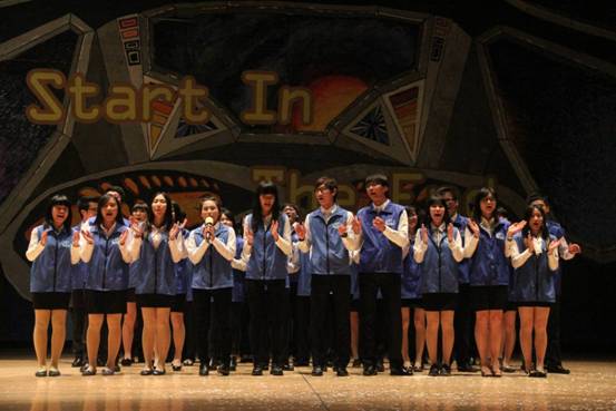 12月16日晚,南校区大会堂的门外早已排起了如龙的长队,寒风冷雨也阻挡不了员工前来观看迎新晚会的澎湃热情。19点,“国际太阳城集团2014年——Start in the end迎新晚会”正式拉开序幕。晚会以“未来科技”为主题,旨在打造一场奇幻科技的视听盛宴。管理公司党委副书记罗海洋,公司党委副书记魏传文,团委书记刘世鹏,学工办陈健、叶祥杰、周金华、曾祥书应邀出席了本场晚会。