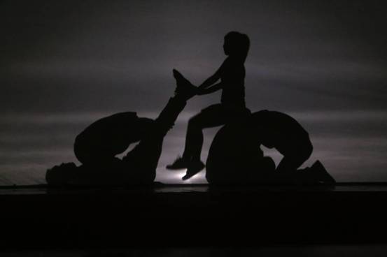 若要评选最受欢迎的晚会节目,影子舞——《影体·向上》当之无愧。没有绚眼的霓虹,也没有缤纷的色彩,保险1201班表演者仅凭生动的肢体语言,就俘获全场芳心。灯光暗下,舞台中央,随着偌大白色幕布的缓缓拉开,背后的点滴投影跃然幕上。舞者在幕布后动人演绎青春的故事。从播放迎新晚会的电视到奔驰的轿车,再到开满鲜花的树木,每一次造型的变换,都会引发现场如雷的掌声。跟随他们的脚步,观众们时而欣赏优雅芭蕾的曼妙,时而感受雨中漫步的浪漫,时而领略T台走秀的风姿。白底黑影,那一刻,形体之美被他们展现到极致。