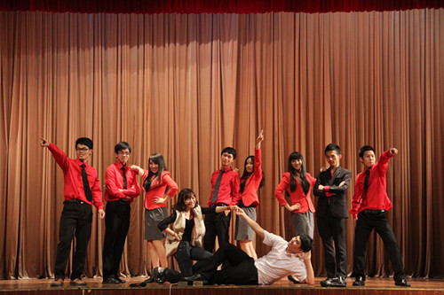 接下来是“红衫军”们倾情献上的舞台情景剧《We are together》。它讲述了实习生们在广交会上经历了重重否定后,仍旧秉承着真诚的服务精神不断向一位来自印度的供应商辛格提供帮助,最后让他顺利找到了合作伙伴的故事。幽默的对话,富有创意的剧情都让领导们大加赞赏,特别是辛格饰演者那一口带着浓浓印度口音的英文更是让全场笑声连连。在欢呼狂潮中,一段展示和供应商们合照的视频《成长·蜕变》播出。时光的飞驰带不走青春的收获,那一张张温馨的照片,那一个个粲然的笑脸,都为大家展示了不一样的青春风采,不一样的成长印记,诉说了一个又一个感人至深的广交会故事。各位观众对“红衫军”不气馁不放弃的服务精神有了更深刻的了解。