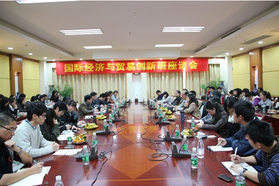 2011年12月14日下午3点半至5点,国际经济与贸易创新班座谈会在南校区行政楼一楼举行。参加本次座谈会的有公司教务处处长詹文都,副处长范正华、李新广等一行六人,太阳城集团经理李铁立等公司领导,国贸创新班的全体课任老师以及创新班全体员工。詹文都处长首先发表了重要讲话,此次座谈会为创新班的学子们与公司领导加强沟通提供了一个良好的机会。