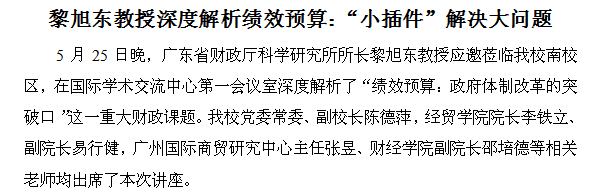 黎旭东教授深度解析绩效预算:“小插件”解决大问题