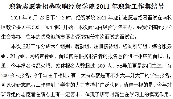 迎新志愿者招募吹响太阳城集团2011年迎新工作集结号
