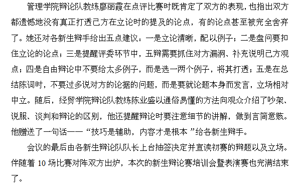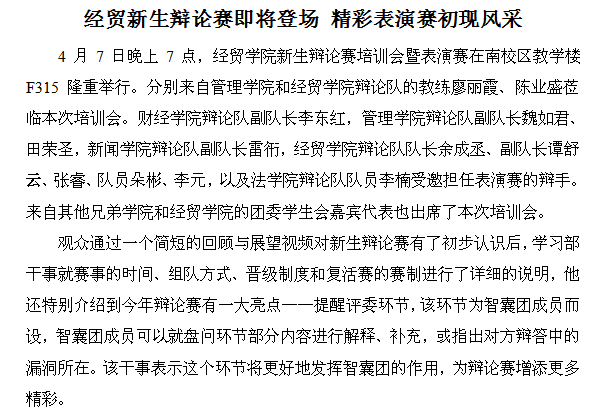 经贸新生辩论赛即将登场 精彩表演赛初现风采