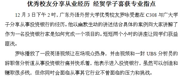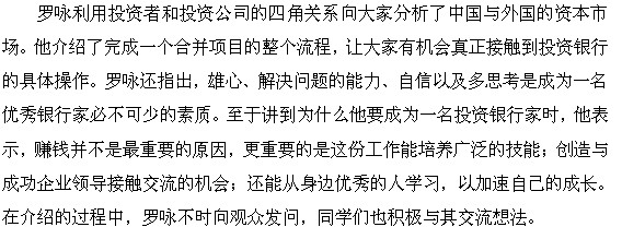 经贸员工论坛:罗咏员工分享“投资银行家”实战经验